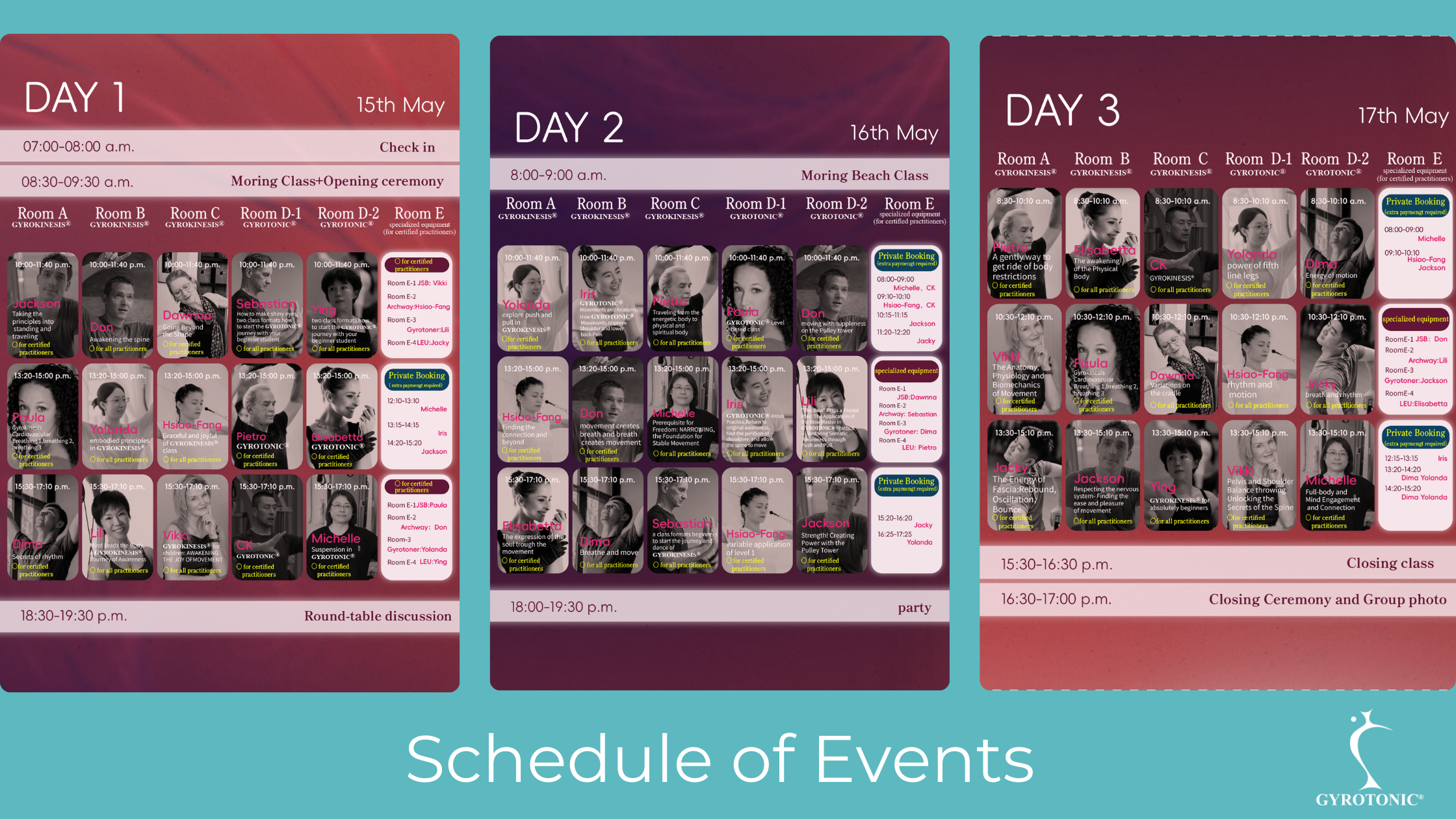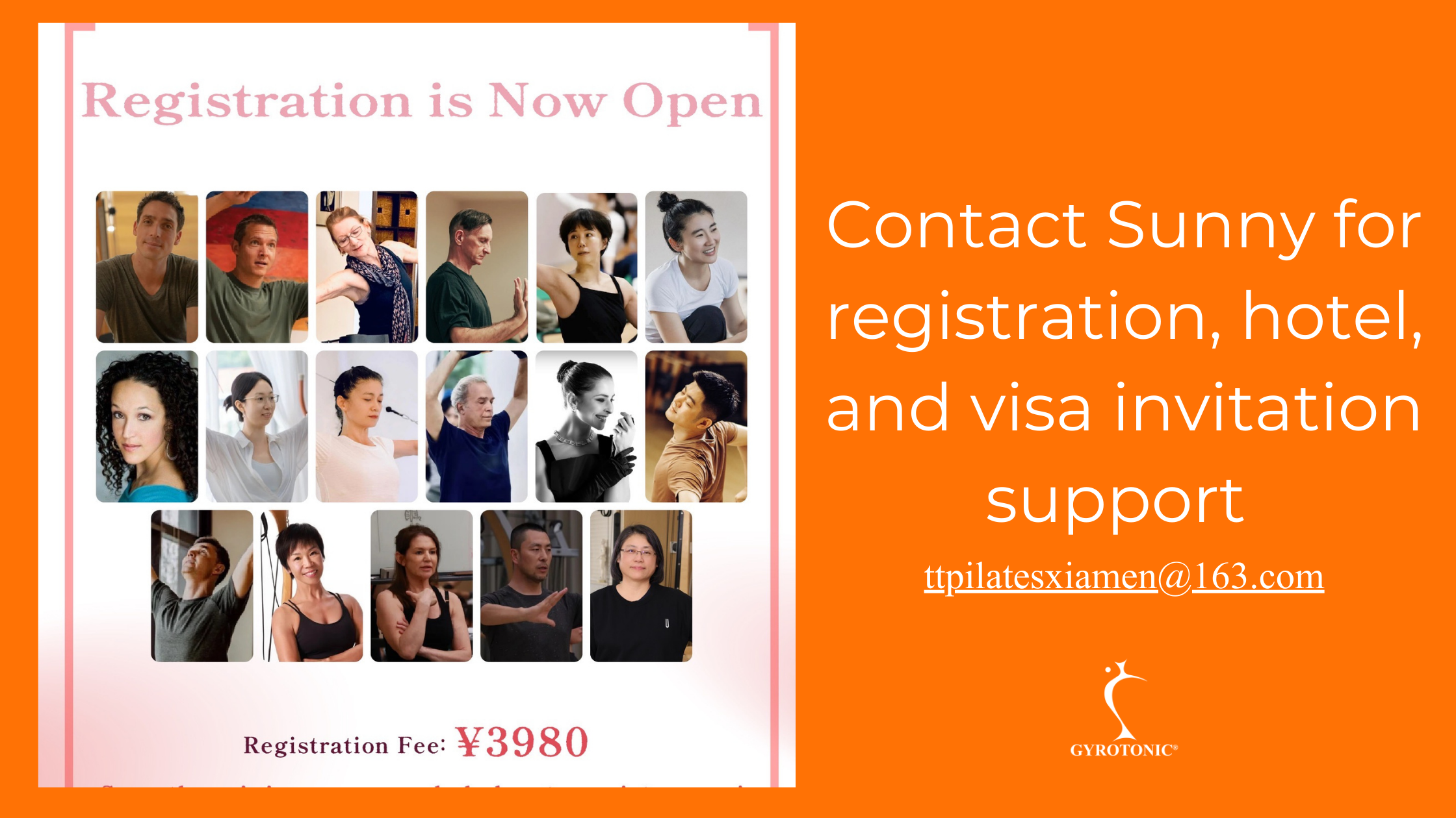 - Application: Please send an email to T.T. Pilates at ttpilatesxiamen@163.com with the subject line ‘Registration for May Gyrotonic Conference.