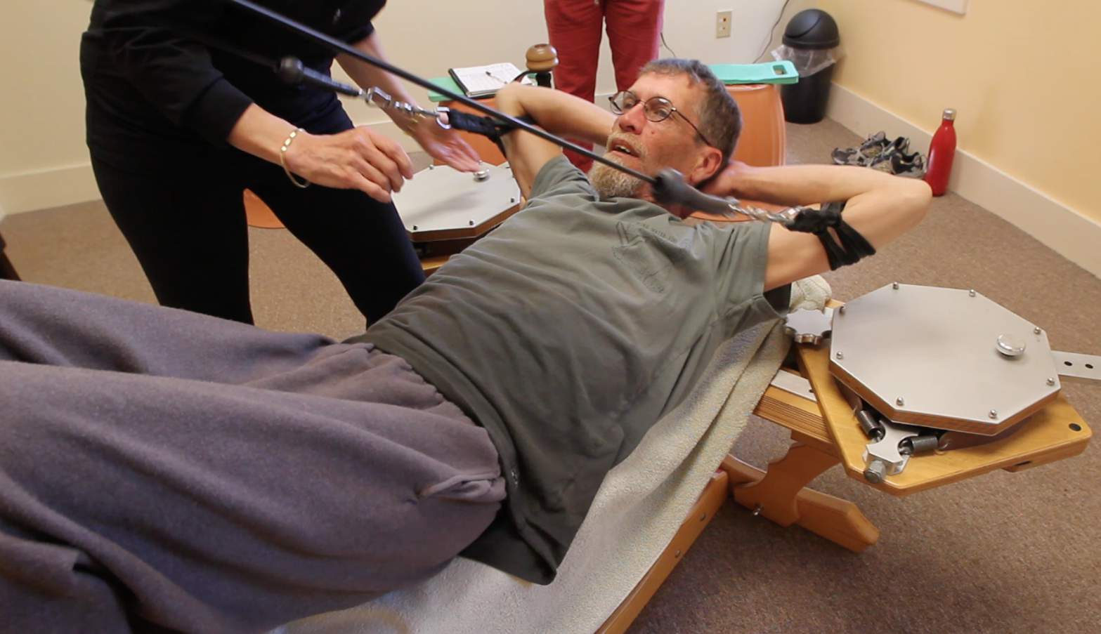 There I learned that after just a few sessions of Gyrotonic work with Randy, and experiencing a radical change in his ability to hope that things could be different, Bill was able to break a 20-year cycle of being on disability and medication. He also convinced the state of Maine to purchase for him a Gyrotonic Pulley Tower.